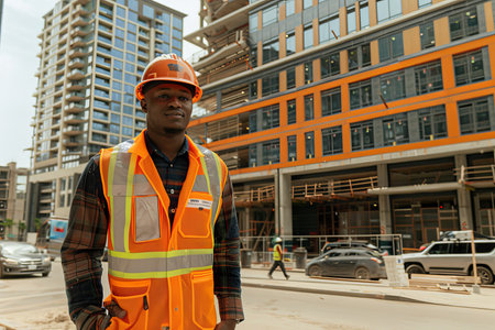 Portrait of an African-American construction worker at a construction site