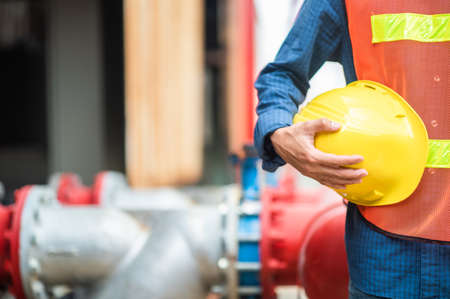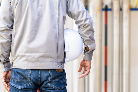 Hand's engineer worker holding white safety helmet for oil refinery
