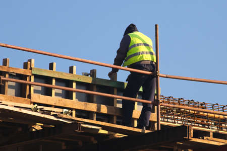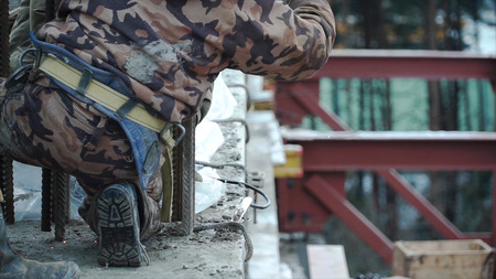Construction worker working on a construction site. Clip. Employee works at the construction site