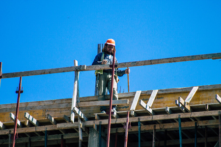 Istanbul,Turkey - 04-02-2013:Construction workers in Istanbul work safely in a multi-storey building