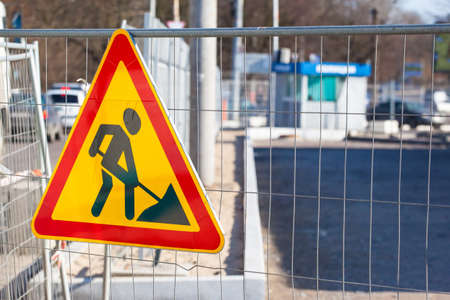 Sign of road work to inform traffic participants about carrying out repairs on road.