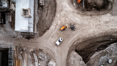 Bird's Eye View of a Bustling Construction Site in the Heart of the, Bird's eye view of a bustling construction site Ai generated