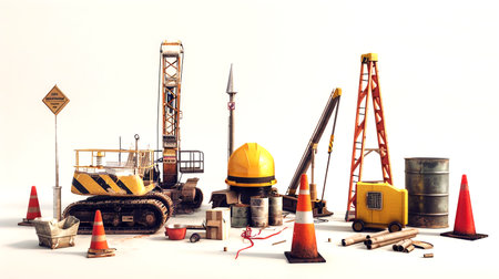 Construction site with crane, excavator, and scaffolding. design for building and development projects.