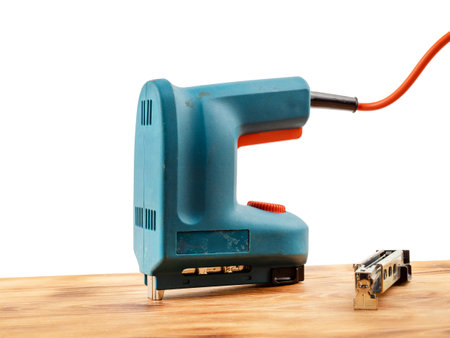 construction stapler on a white background