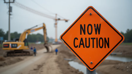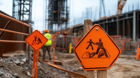 A construction site with caution signs and barriers, highlighting the importance of safety