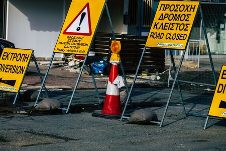 Limassol Cyprus March 19, 2020 View of street sign in the city of Limassol in the afternoon