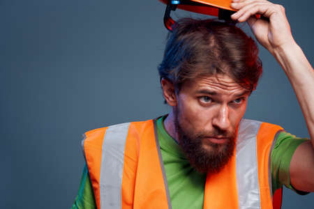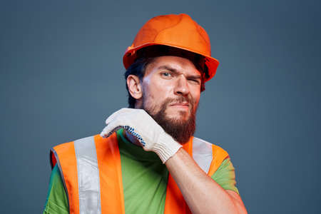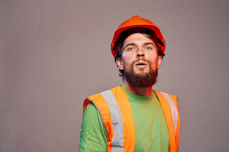 Worker man in orange paint construction security professional