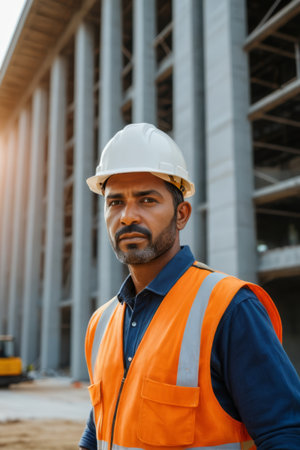 Portrait of an African-American construction worker at a construction site