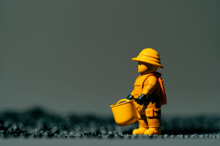 Plastic toy figures of construction workers with construction equipment at a construction site