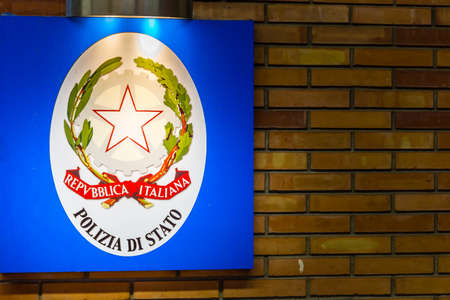 BOLOGNA, ITALY - OCTOBER 17, 2018: light is enlightening Italian State Police logo