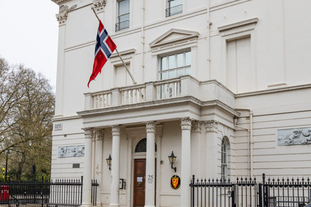 Norwegian Embassy Building in London with Flag. London, UK, 6 April 2024