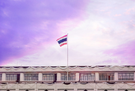 View of Thai flag on the building at twilight.