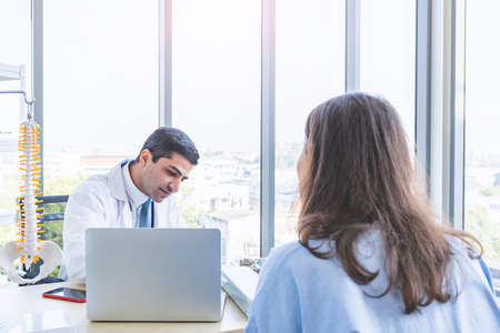 Doctor work consulting and examining patient woman or sick person for her health in seriously at medical clinic or hospital, seeing doctor concept