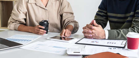 Business partner team working together meeting are discussing and analyzing with new strategic marketing project investment to growth up the profit of project.
