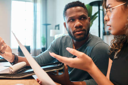 Young software engineers working from home and discussing ways to develop the project they are working on