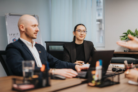 Professional Team Collaborates During Office Meeting in a Modern Business Environment