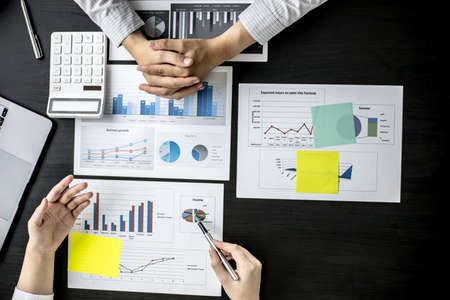 Asian business adviser meeting to analyze and discuss the situation on the financial report in the meeting room.Investment Consultant,Financial advisor and accounting concept