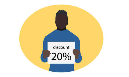 Hot sale topic: black hand holding a red card with 20 % discount on white background studio