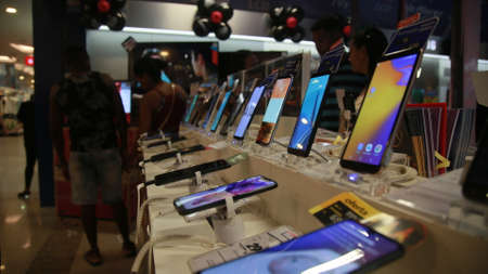 salvador, bahia / brazil - november 29, 2019: Customers are seen in a smartphone store during the Black Friday promotion at a mall in the city of Salvador.
