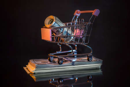 the buy buyers towels for the house and gives dollars to the seller. shopping concept