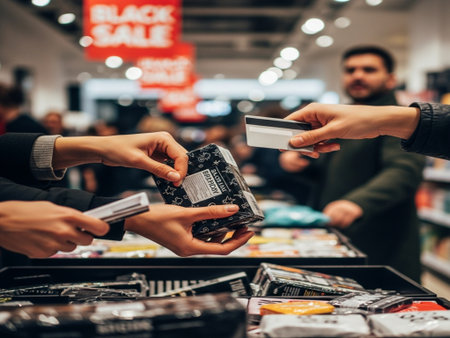 Woman taking shopping bag from the seller, she doing shopping during sale in the store