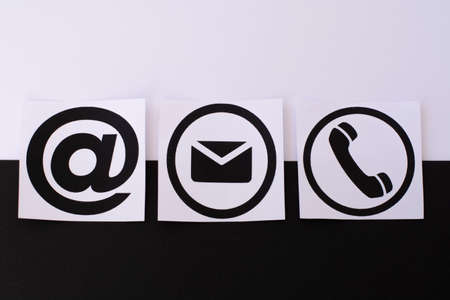 Online business communication symbols of telephone, email and mail address. Contact us or e-mail marketing concept