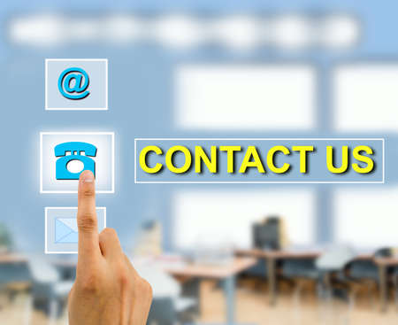Contact us concept using female hand touching a button futuristic contact us . All screen content is designed by me and not copyrighted by others and created with wacom tablet and ps