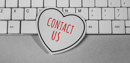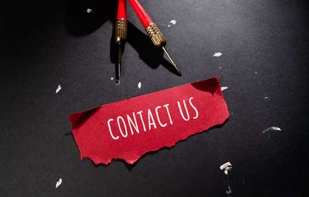 Contact us button concept. Black beads on trendy pink background making word. Support, helpdesk, office communication theme. Connecting with customers and business owners. Phrase made of small letters
