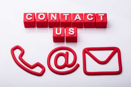 Red Cubes With Contact Us Text And Icons Showing Various Communication Options