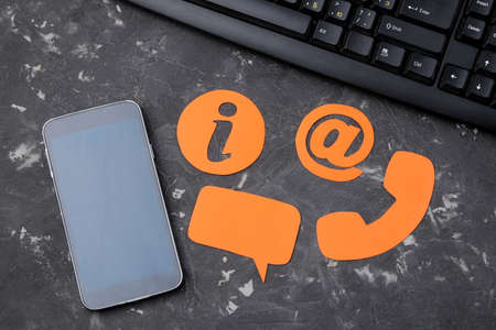 Contact Icons Letter Email Message Phone Concept on the keyboard