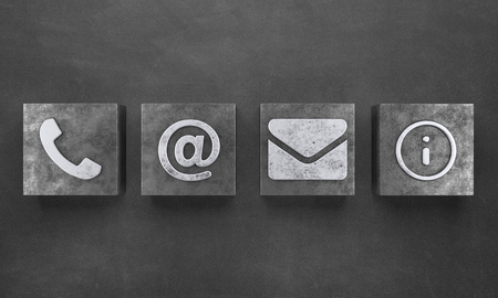 Online business communication symbols of telephone, email and mail address Contact us or e-mail marketing