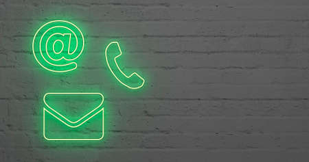 abstract contact icon as neon light in front of background - 3D Illustration