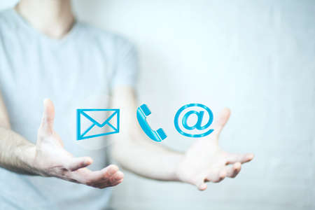 Icon telephone, email, address. Website page contact us or e-mail marketing concept