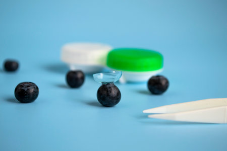 ÐšÑ€ÐµÐ°Ñ‚Ð¸Ð²Ð½Ð°Ñ ÐºÐ¾Ð½Ñ†ÐµÐ¿Ñ†Ð¸Ñ: здоровье глаз на Ñинем фоне, контактные линзы на чернике. Копировать проÑтранÑтво