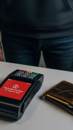 A tightly framed, square-format photograph capturing the instantaneous moment of a digital transacti