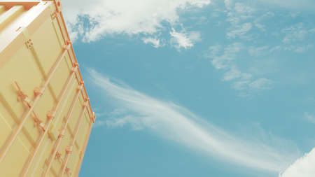 Front of the yellow container. There is clear sky on side for put banner or message. focus on soft tones or pastel color. Minimal idea concept, 3D Render.