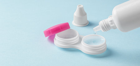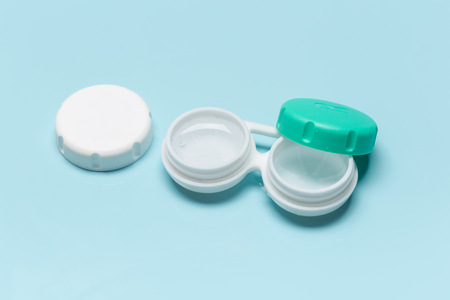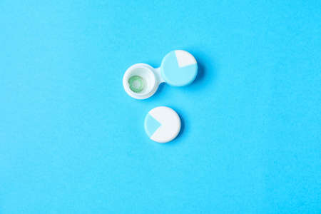 Storage container for contact lenses on blue background