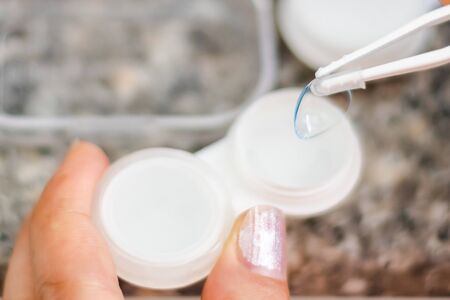 Wearing vision cornerion/contact lens to the eye. Glass and Replace. Cleaning of Contact Lenses