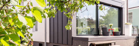 Modern house with terrace and garden. 3d rendering, 3d illustration.
