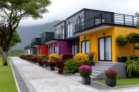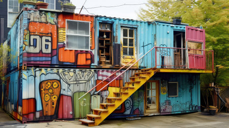 Colorful Creative Paitning Door on the cargo containers used as home by anyone to solve housing problem, Bangkok
