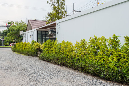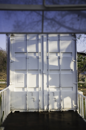 Modern metal White building made from shipping containers and Empty white wall textures .