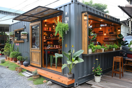 Sing Buri, Thailand, May 14, 2016: Container old Weiner converted into offices or shops are located along the streets of Thailand.