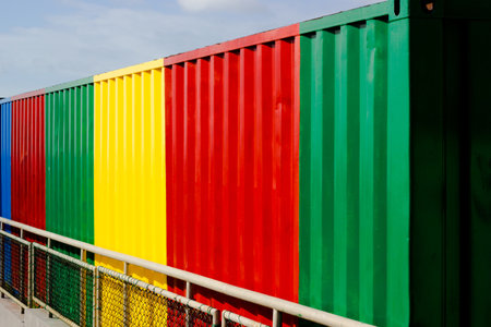 Colorful cargo containers stacked in a container terminal. Industrial background.