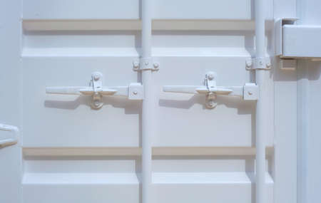 View of iron white door with iron handle