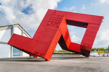 Kaohsiung, Taiwan - April 30, 2019: Awesome art object of exhibition in the Pier-2 Art Center. The Pier-2 is a popular cultural spot and tourist destination of Asia.