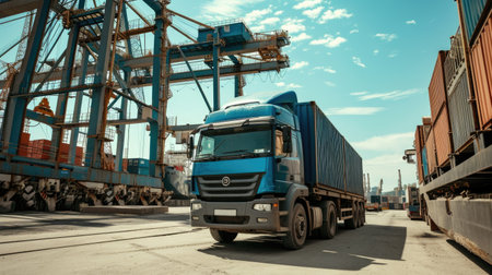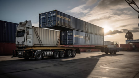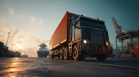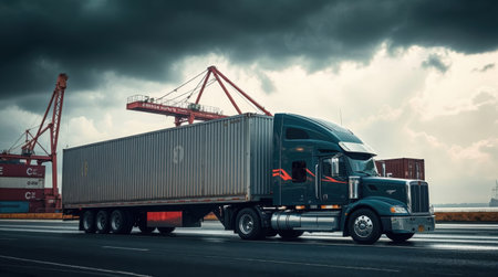 An image highlighting a container truck in action, symbolizing the vital role of logistics in import-export and cargo transportation. The scene emphasizes seamless supply chain and global trade