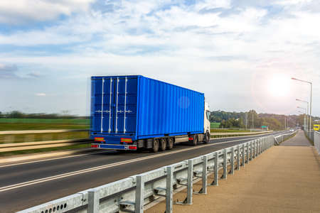 Truck with container on the road. Freight transportation concept.