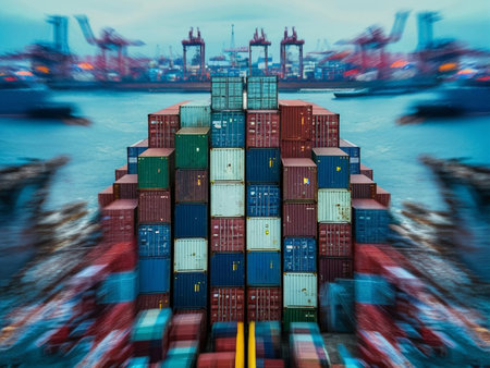 A large containership in a harbour