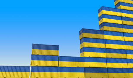 Containers with flags of Ukraine making a rising trend graph. Business success related 3D rendering