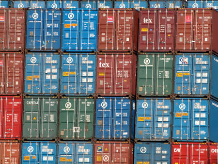 Colorful cargo containers in the port of Amsterdam, Holland, Netherlands